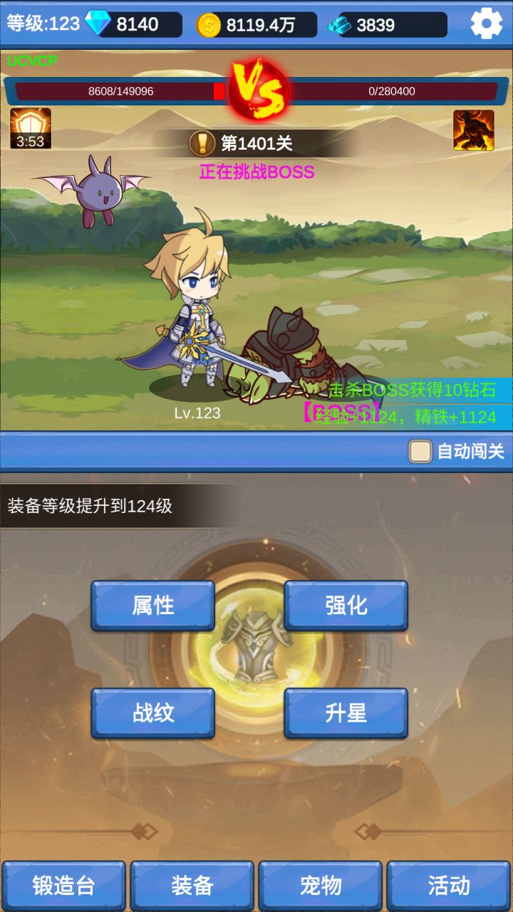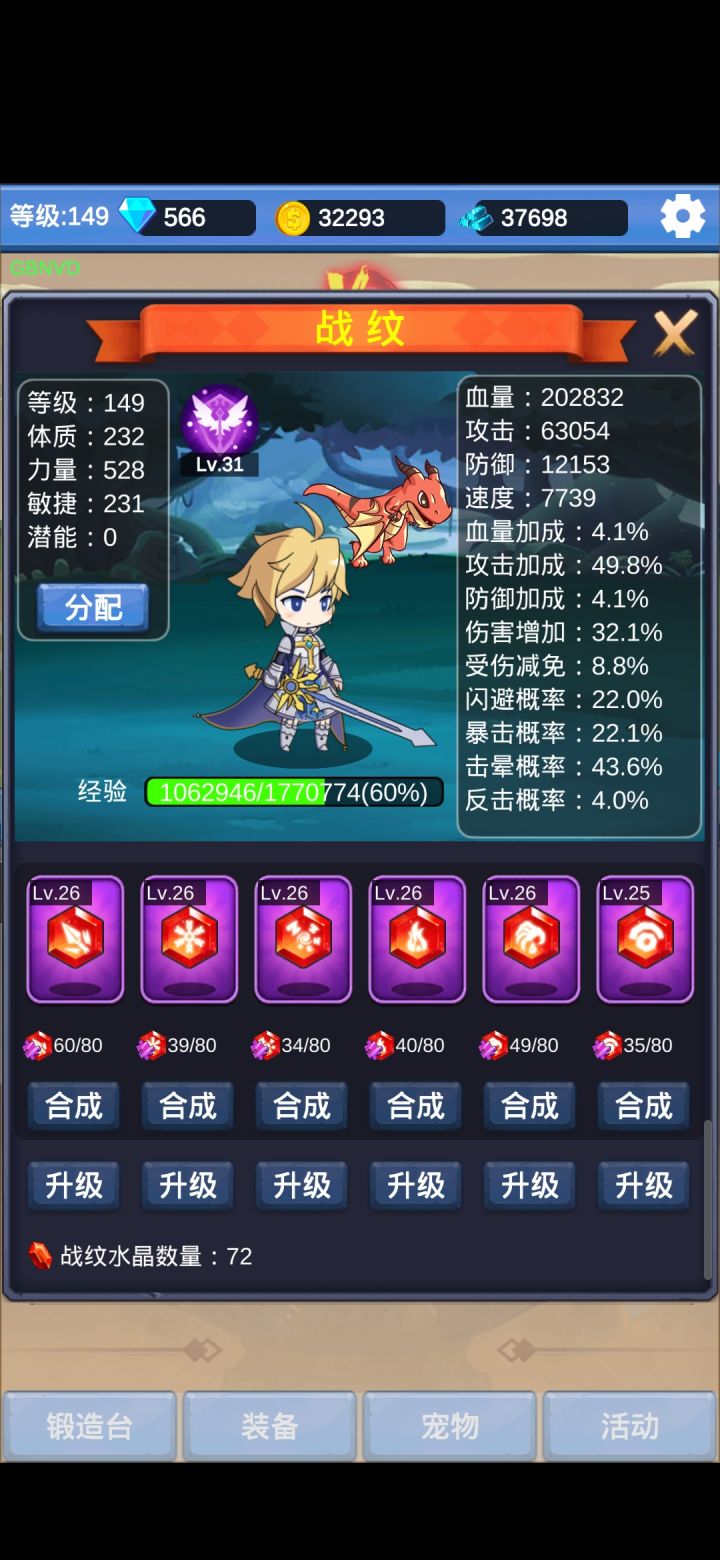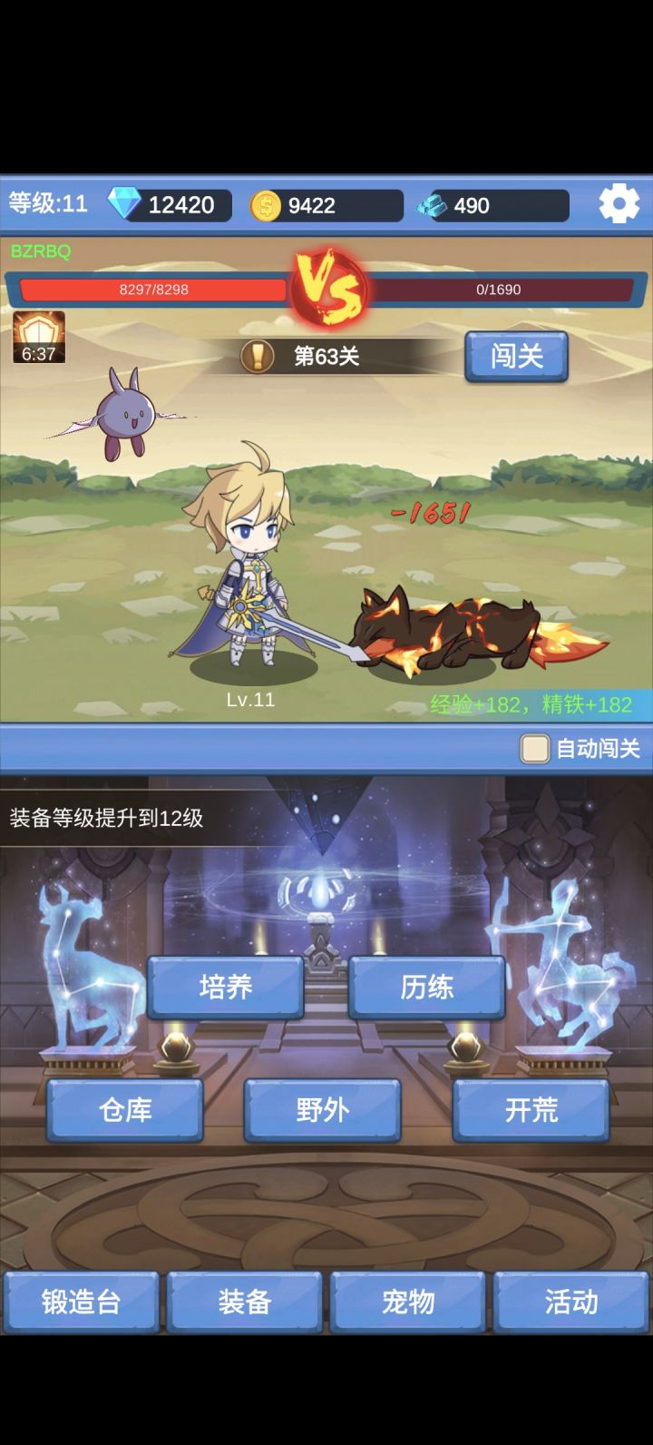 先晒图,四天九小时108级,目前锻造台14升15,还差十几小时1244关完全砍不动了 也就小玩几天,论坛攻略看了一些,并且每个广告都看。一、宠物。我刚开始很期待的宠物系统,没想到这些天来还是用的第二天签到的紫宠,今天凌晨五阶的,只能说前期宠物不用那么在乎,只要多打打开荒,提高灵田等级就好,一百级以上的灵田打一次要花5w金币,卖了很多装备其实5w也还好,多试两次就能打过一级。二,资源。不管是