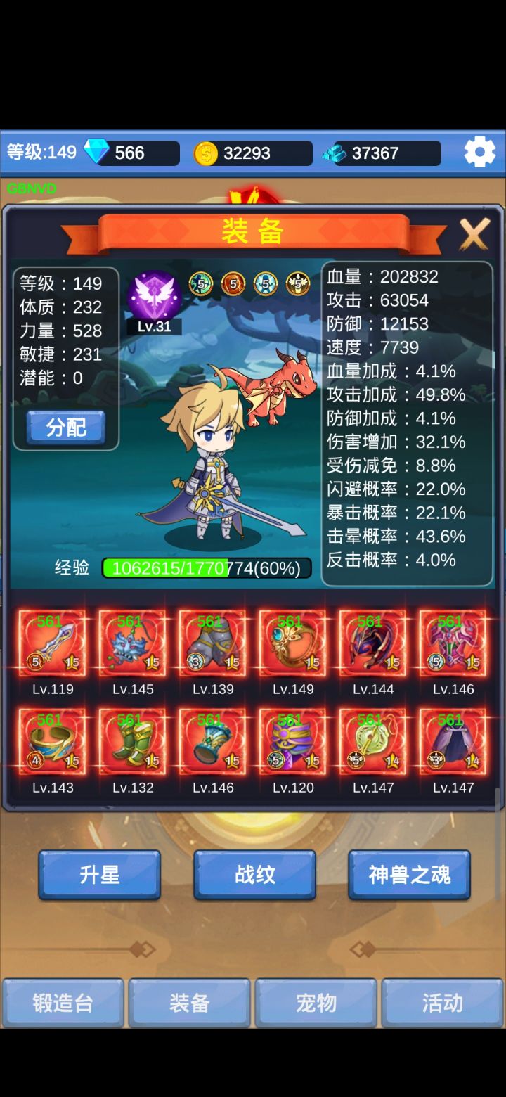 这个游戏没玩多久,但是类似的游戏玩了太多(会持续更新)万变不离其宗,一样的思路就能稳发育①暴击>击晕>闪避=反击②加点优先力量③每日入账的钻石不多,前期可以缓慢升星④能推关就推关,加长挂机上限暴击 连击这是这类游戏永恒不变的t0氪金打法,但是这是个免费游戏,所以适用于全部玩家不过没有连击,但是有类似效果的击晕并且难得的,敌人没有抗性,所以我们的属性叠再高都可以所以暴击和击晕是