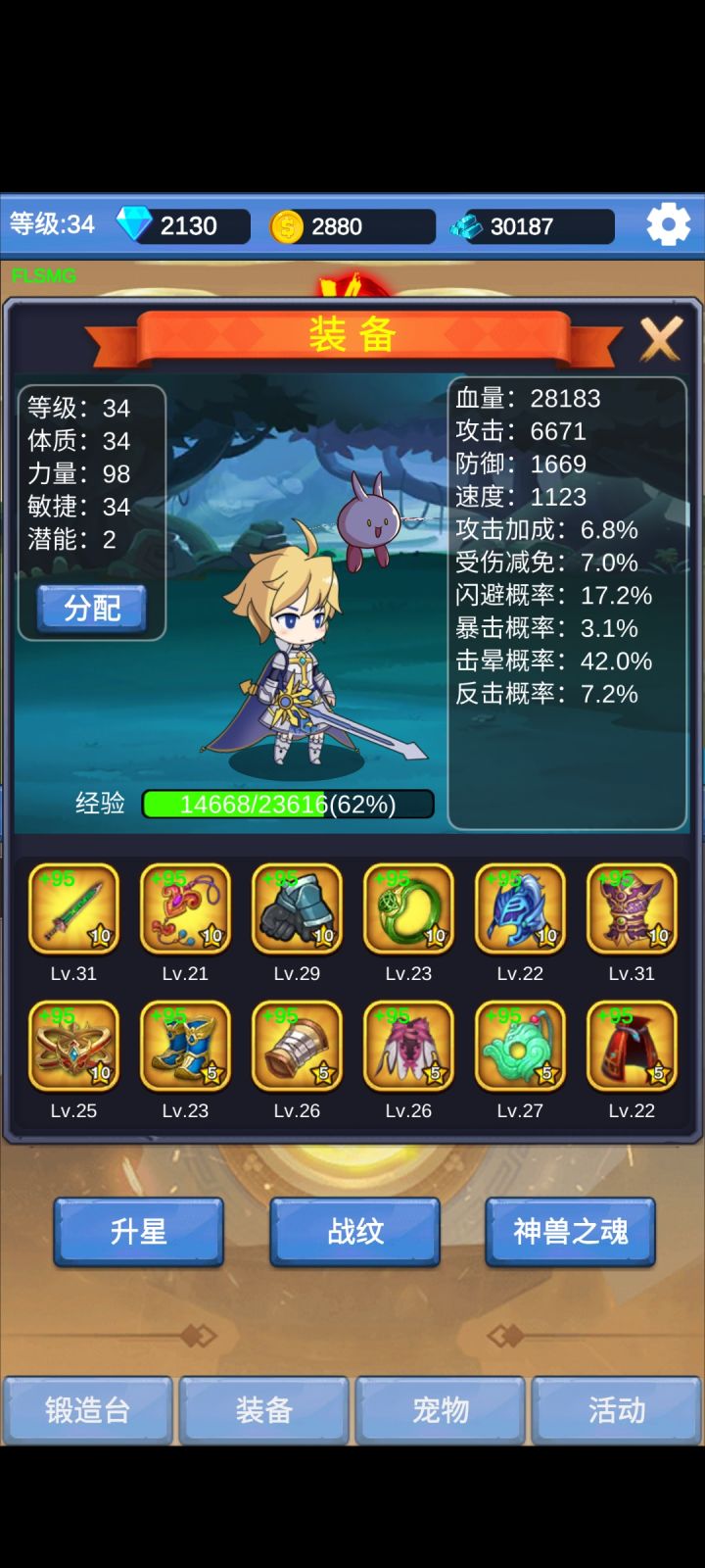 玩了半天可以分享一下,个人是认为装备开局都弄击晕为主,接着走暴力输出方向,等传说装备3系属性先可以走攻击+暴击+击晕,单机推图游戏,直接暴力走起,宠物尽管升级是共享的,一个等级全部享用