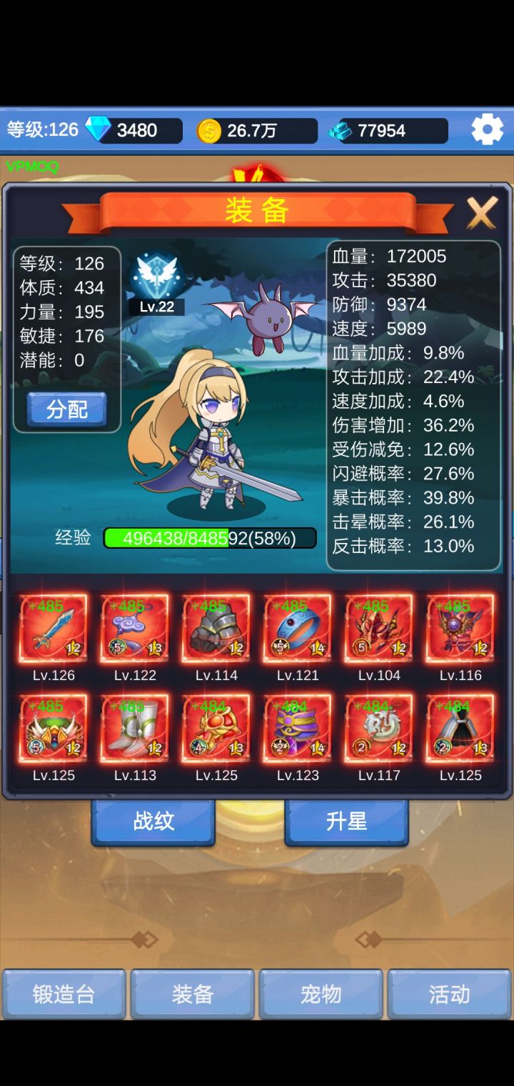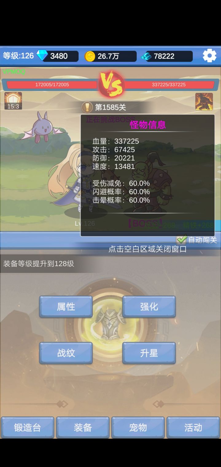 有人要求看2000关面板,再发一遍。1.为什么舍弃闪避,因为都连点器就是赌概率,只需要赌攻击不miss,且触发暴击击晕。闪避面板差了,虽然通关概率可能差不多,但闪避是浪费时间,有些时候一丝血还不如早点被打死。2.高攻击面板的好处,打小怪会快很多,缩短连点器时间,你击晕住boss的反击特性等等都无效,只用赌自己连晕暴击通关。比闪避少一项赌的概率还省了动画时间。只需要在乎加爆伤技能,命中,破防技能就行。其他对概率提升影响一般般。