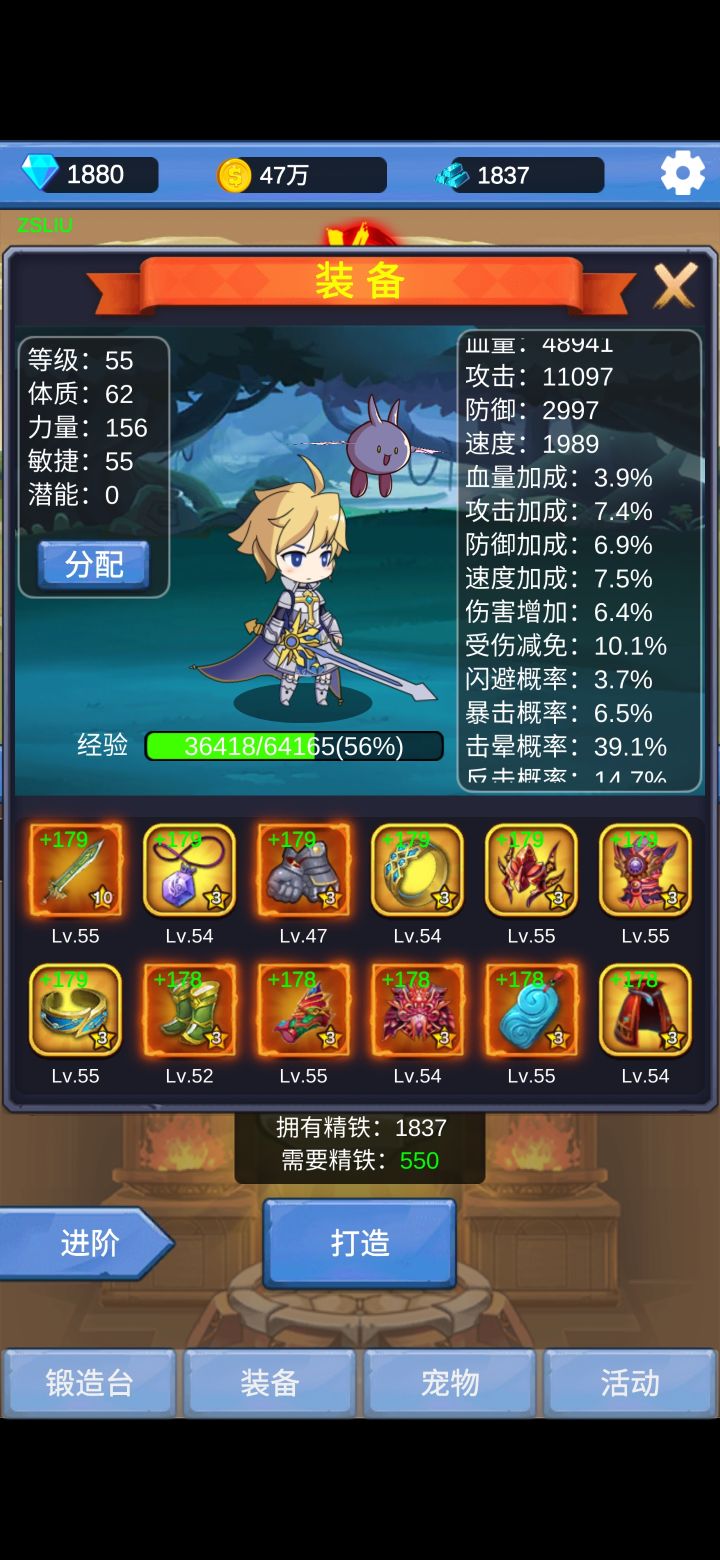 虽然后台显示玩了24小时,但其实手动就几个小时。这游戏核心玩法,那句话怎么说来着……垃圾游戏,全靠运气。装备无脑选击晕、闪避、暴击、反击之类属性就可以了,击晕优先一切,然后就无限尝试打首领和无限死了,只要运气够好,总会过的(至少我目前是这样)。