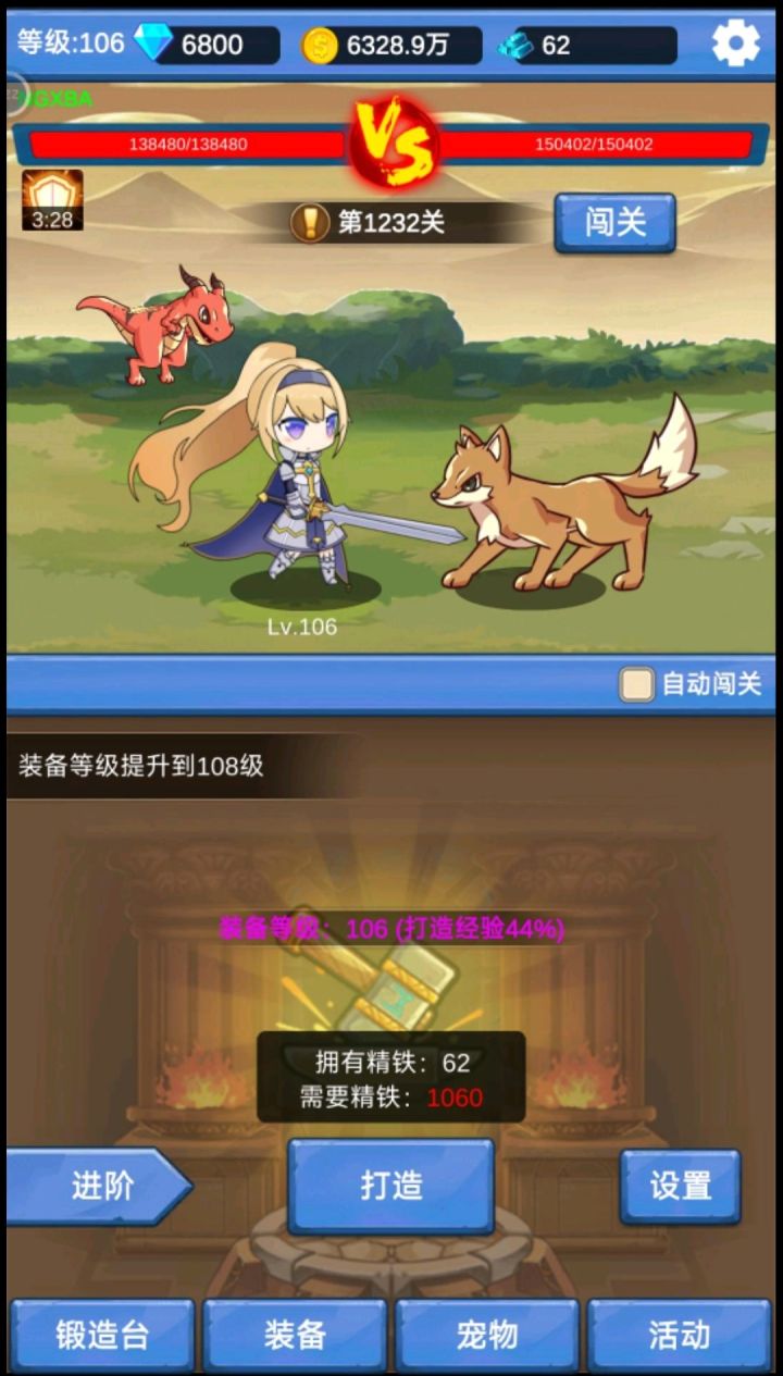 操作简单直观,所有东西只管升,换的时候全继承。没广告很棒的游戏😁