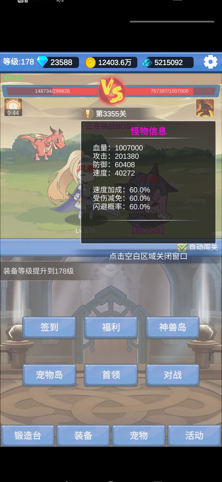 放置挺好玩的,建议加一个装备等级低于自身等级自动出售的功能,橙装也得一个个出售