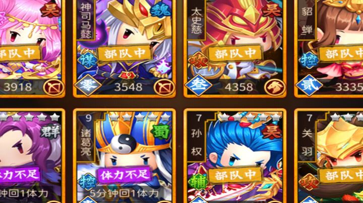 玩过不少类似题材,类型的游戏,萌军天下确实有不少的特色,我也玩了两个月的时间,前前后后开了两个区,资源地也打到了20级,谈谈我的游戏感想。 1.游戏单区人不多,很容易获得排名上的优势资源。 2.游戏不太氪,一般首充不冲都没事,但是要花时间。 3.网上的搭配攻略还是要看,要学会搭配武将 以上三点是整体感受。 攻略部分 1.前期元宝很容易得到,各种任务后,白嫖大概有个20000元宝,基本上都用来抽卡,快速形成1/2队的神将,橙将12级以上地很难打,10级以内,橙将还是有用的,要是抽卡运气不好,也要搭配两神1橙将,集中资源重点培养,别什么将都培养。 2.做任务线,也可以得到大量资源,用于升级建筑,优先全部升到10级,不仅有加成,而且建筑的功能也会有一个台阶上,兵营也可以开满10队。 3.神将分为普通和绝版,普通的容易培养,碎片容易得到,但是后期比较乏力,绝版的后期强势,但是日常难以得到,需要耐心培养 4.心愿卡包,尽量抽绝版神将,不建议抽普通神将。 给官方一点建议 征兵机制不太友好,建议预备兵征兵制 下图是玩了一周时间的新号,6元首充党万家的号,玩的不好,请大家多多指导,谢谢!