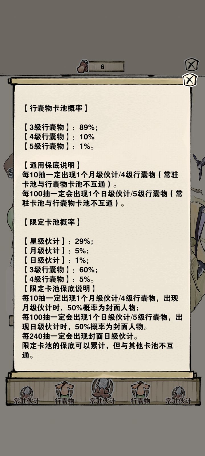 两个问题一,今天更新之后卡池保底也刷新了,算不算bug?我前面已经抽了几十抽没出日,更新补偿只有十个招募令,感觉好亏。二,怎么刷都刷不出来寒瓜,无花果,桑椹,莲花,蜂蜜的种子,我已经升到粼粼波光了,山泉水什么的基本每次都有,就前面几个怎么都刷不出来,是不是和我前面用了种子许愿签开这几个的图鉴有关系?
