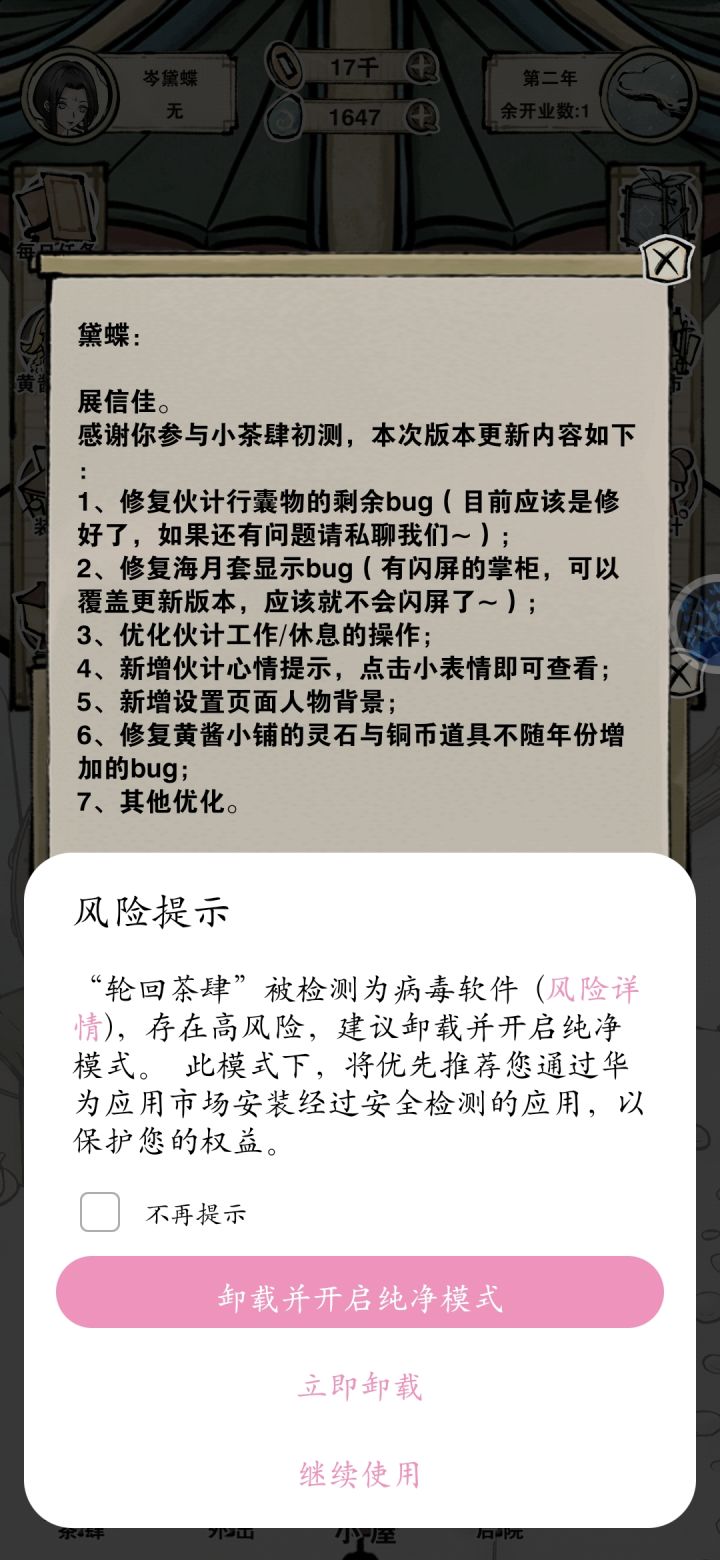 ?我上一个那么提示的游戏是水乡芳华录。和这个都是更新几个版本后提醒的。这个是刚刚更新完提醒的。不会只有华为这样吧。啥情况啊
