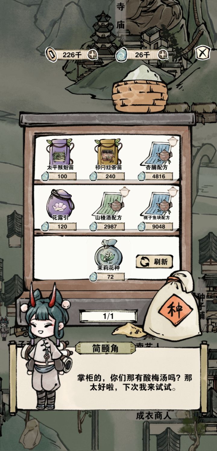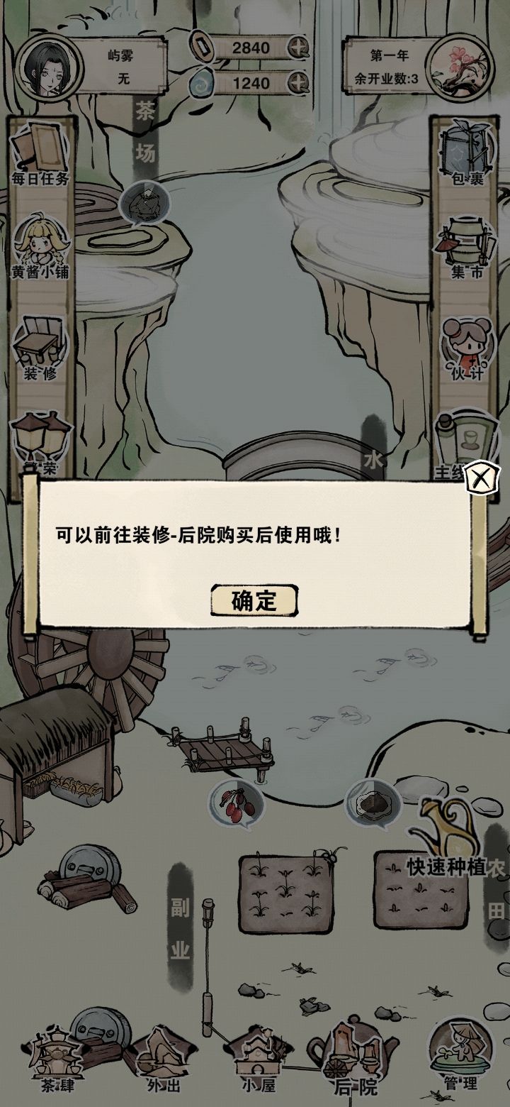 从鸣沙客栈来的🤒这个画风感觉不如鸣沙精致,但是茶叶还蛮感兴趣的,目前就是营业的时候客人那个泡泡点总是会点到家具,点不到那个泡泡,然后后院种植的位置不是很清晰,水塘摸索了五分钟😂希望能做的清楚一点