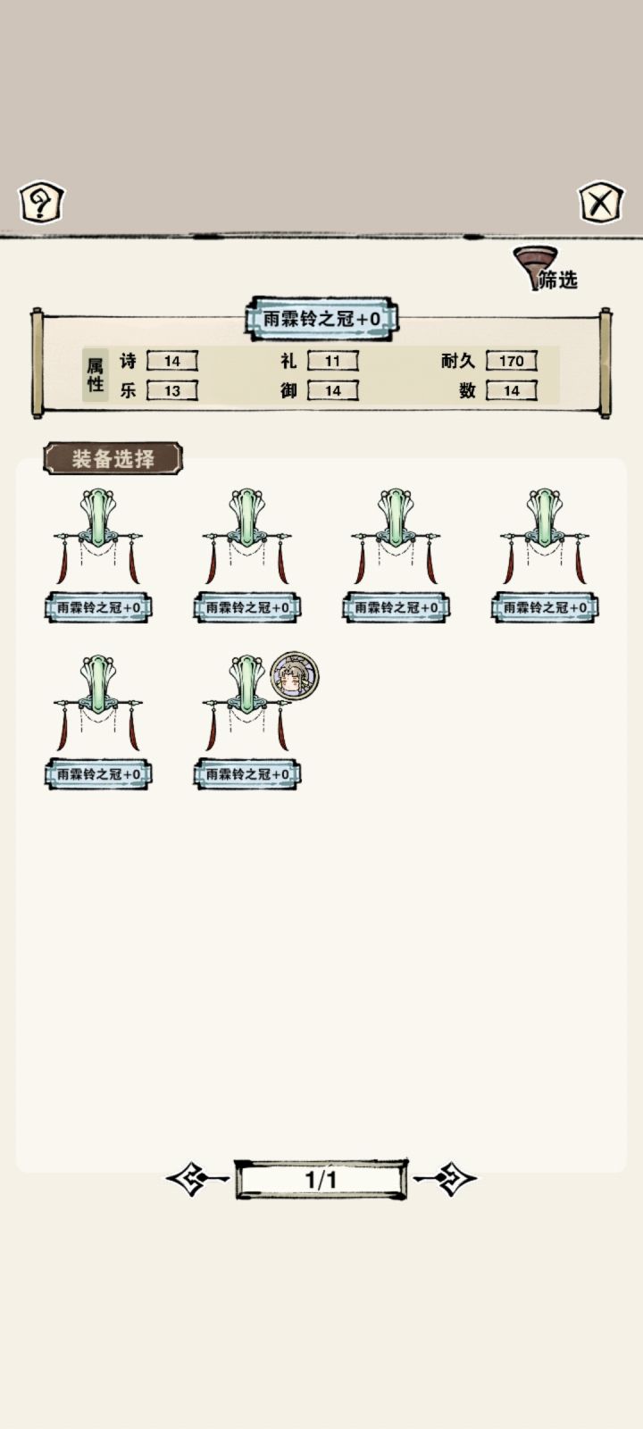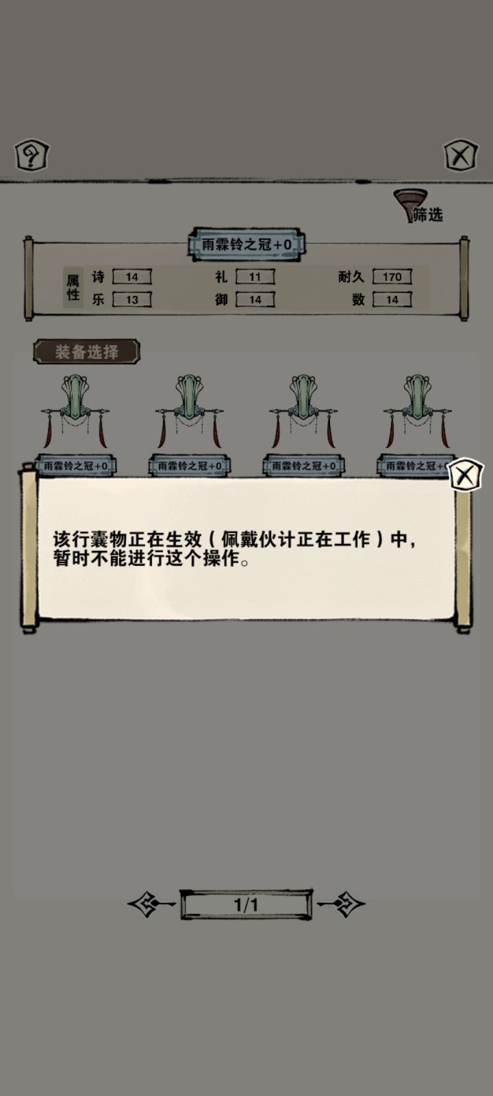 在工作的角色佩戴的是最后一个装备,但是我给另外一个角色佩戴装备点第一个的时候还是弹出图二的提醒,不只是这个头冠有这个问题,衣服好像也有这个问题