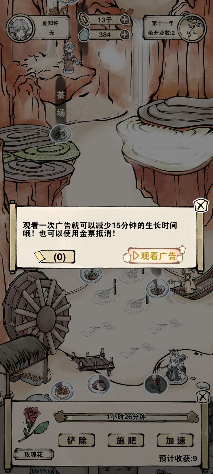 加速生长看广告一次减少15分钟,但是肥料的话看两次广告缩短20分钟,我看这个肥料是不合算的