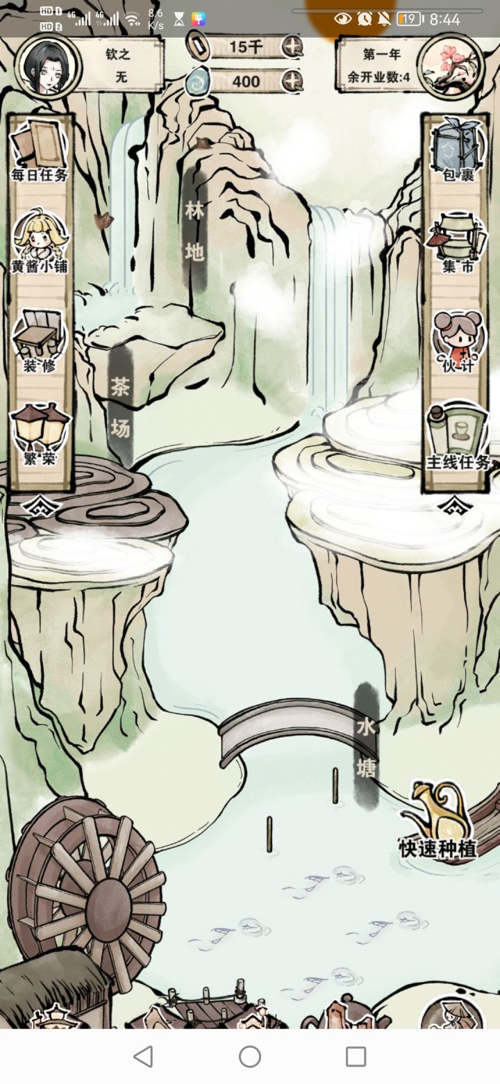 我已经购买好了林场,茶场,水塘所有种地的。但是呢,我去种地的时候只有那个田地可以种,其他的点不了,提示我去装修里面购买,可是我已经买过了,这是bug吧?我本来想截图提示我的界面的,但是这个游戏不知道为什么会屏蔽我的截图,不太好截图。😂😂