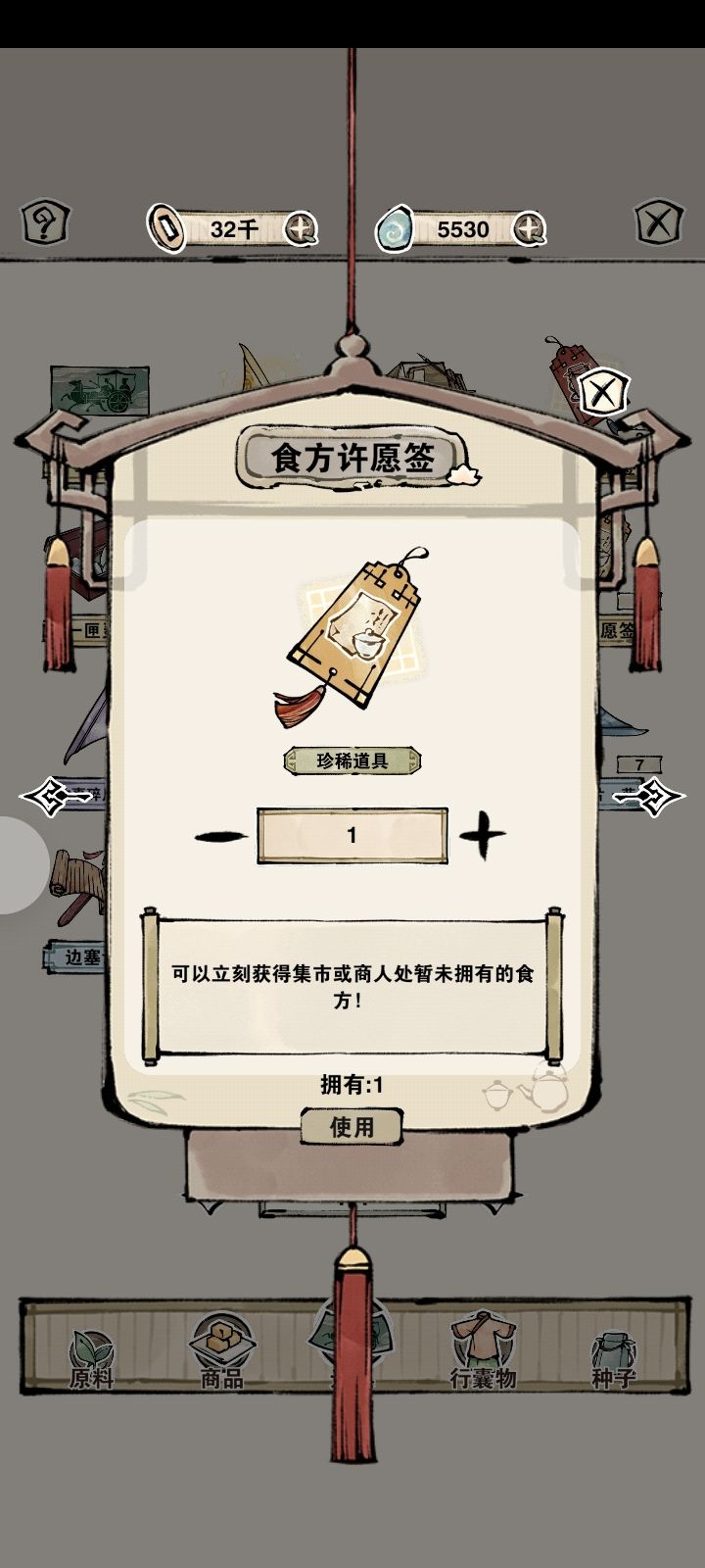 这个许愿签使用了之后没有反应,没有出现方子,许愿签还在我的背包