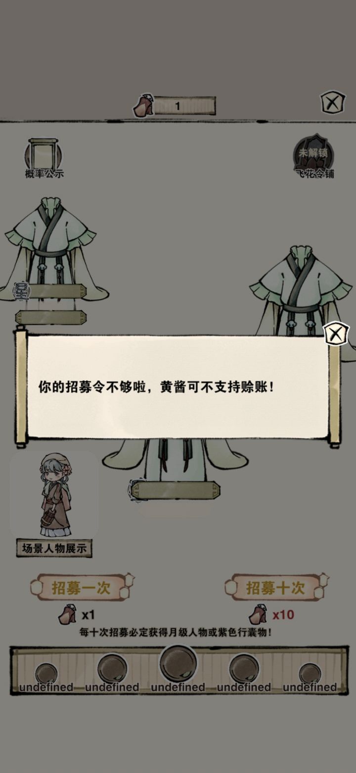我想招伙计,点了两次十连,都没有显示,现在我招募令都没了,这是bug吧?