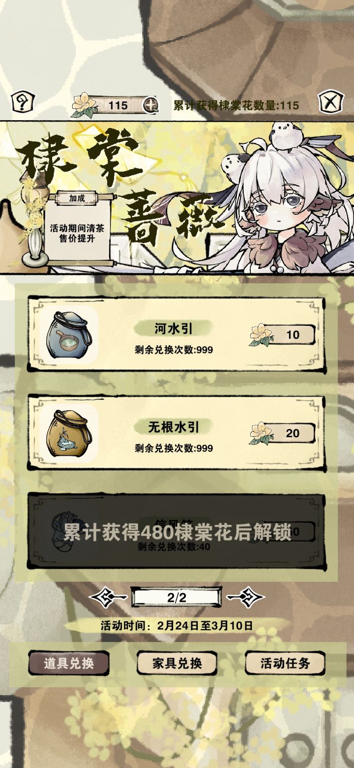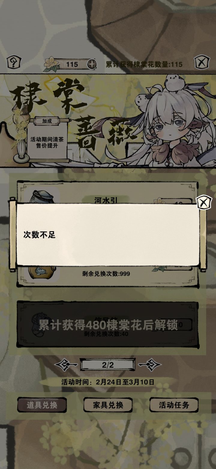 活动的广告没法看,显示次数不够。今天的任务都做完了,现在总共115。没有兑换其他东西,都还是999