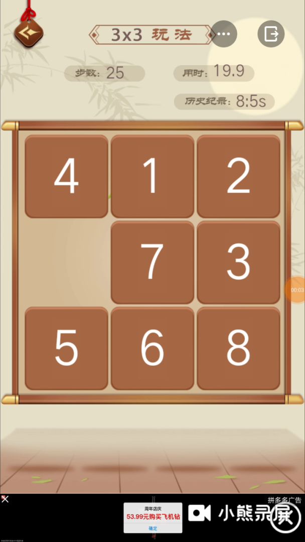 实在没意思,氵个帖子——————————————————正文正文正文正文关于野蛮人智斗,一个九宫格的华容道小游戏,有那么难吗?好像是挺难,哈哈游戏中是以一个图案的形式呈现的,太复杂,不好弄,新人容易弄着弄着就超过步数了,非常痛苦的,所以这张图是不是很易懂好了,现在开始动了,先把1弄到他的位置然后,把3这个数字移动到2的位置,把2移动到3的下面也就是5的位置然后,空格在8的位置,把