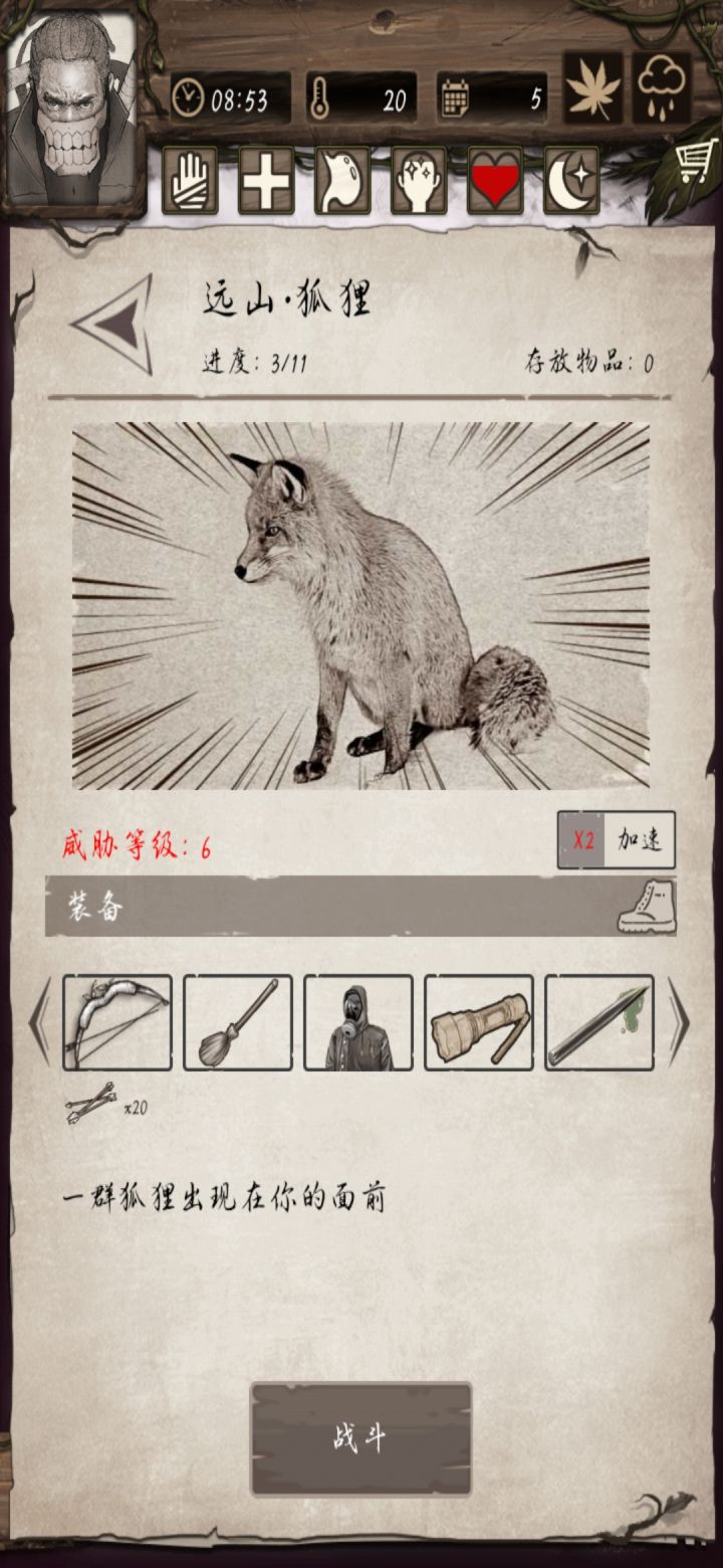 第一次打挑12没想到过了,领了邮件的3个物品,烤肉和乱炖,石片是我懒的跑去瀑布拿了直接领了。贝壳倒是没花一个(´・ω・`)主要是我为了稳,从瀑布开始的物资基本上全卡的双倍,像石片石头,木头竹子之类的关键物品都是卡双倍😂所以前期过的特别舒服,第2天2级床就出来了,,就是卡双倍时间长点(也没太长1个小时)在然后就是运气比较好了烧牌第一个恐吓,脸白一路吓到过完丘陵,第二个就是灵巧,直接推了溶洞和远山就回