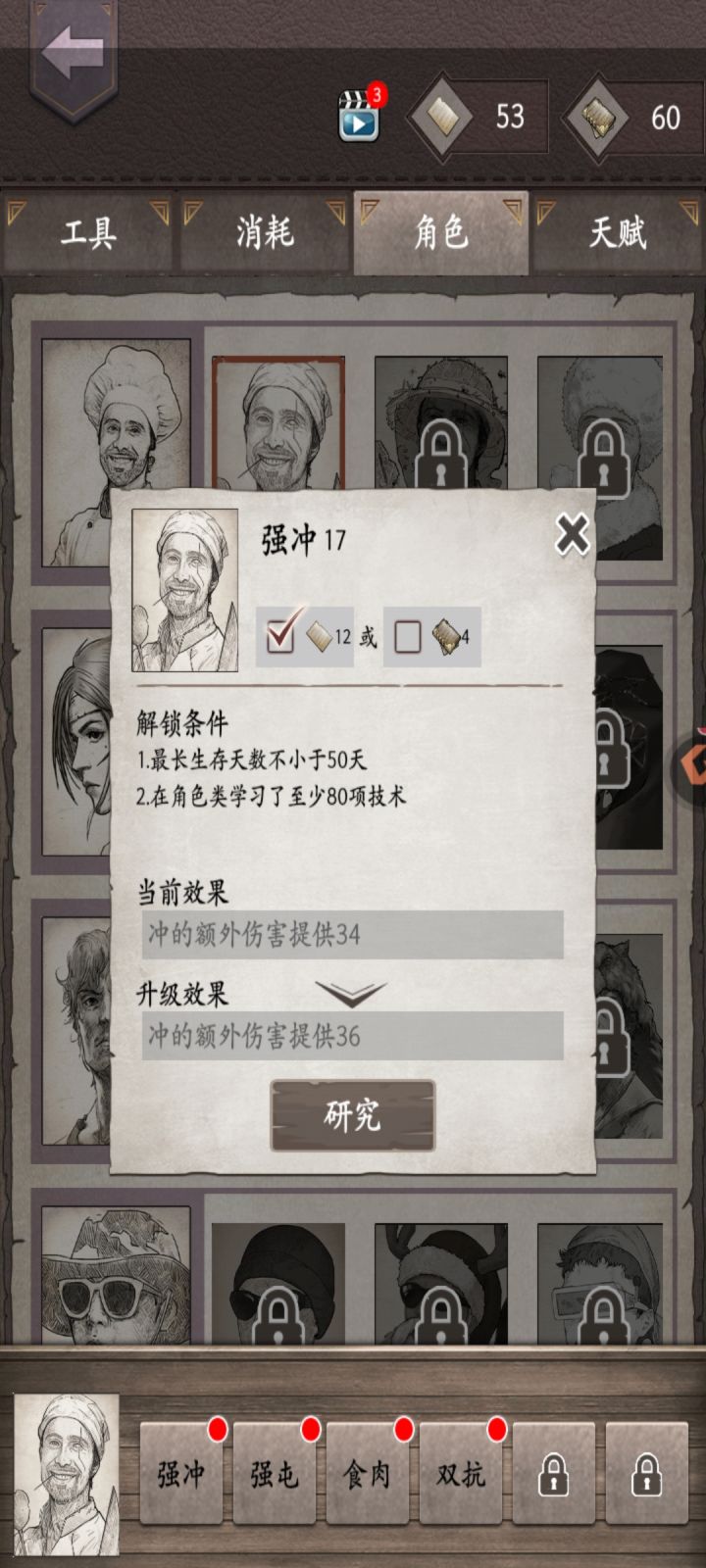 大佬,求回复!战厨冲食肉17,屯10,抗5,生命24,精神10死基刚买,没升。是全部加战厨还是攒死基呢