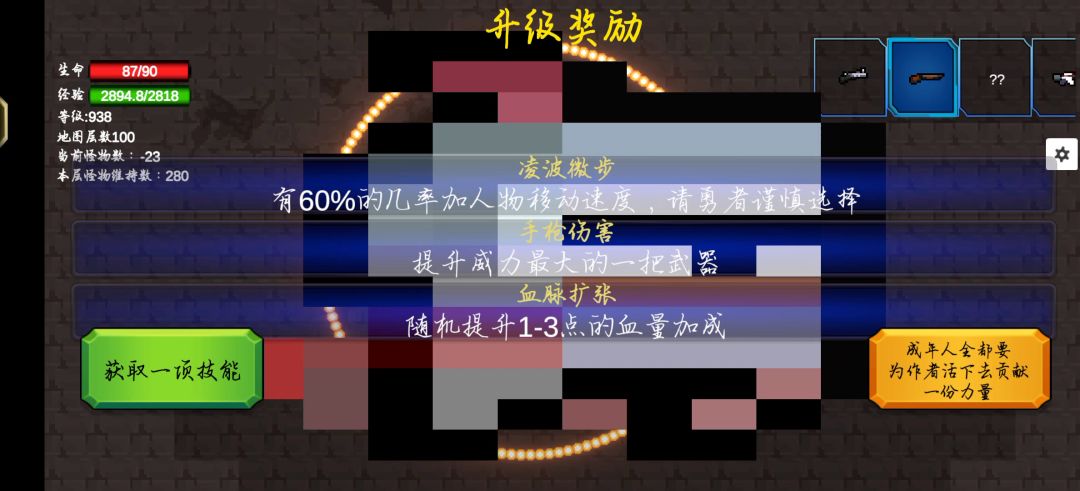 两百多级了,攻击速度也升级太慢了,只有0.8,根本没刺激的感觉。开发初衷是玩几天才能堆砌速度?只有烟花可以用,另外两个武器谁用谁知道,打一点血的怪有用吧。最好能在篝火加上退层吧。什么时候出新武器?