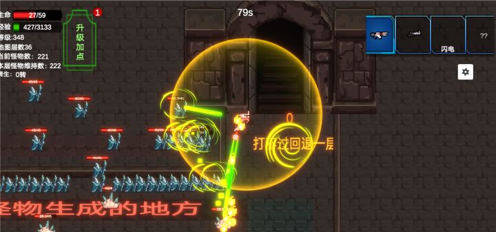 每级成长太低了,稍微再高点就好了。而且每次选技能都要点关闭,就挺烦,因为这个等级选择次数太多了,不像其它的游戏,就几次。所有武器用一遍,只感觉雷电好用。