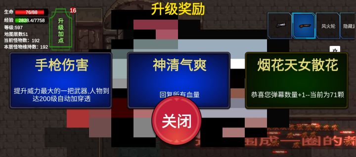 加点能不能一直加不用点这个关闭 不想加完才去点关闭 还有我玩烟花 圆周点满了 攻击力和子弹数量不够秒不了怪 只能缩减圆周 每次加完点就变360 能加个锁么