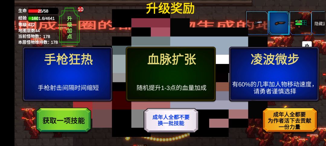 3.手枪如果不能加弹幕数量,那就加点随等级成长攻击,两连发、三连发之类的,因为其它武器如果几十个弹幕,那点攻击加成是比手枪多的。