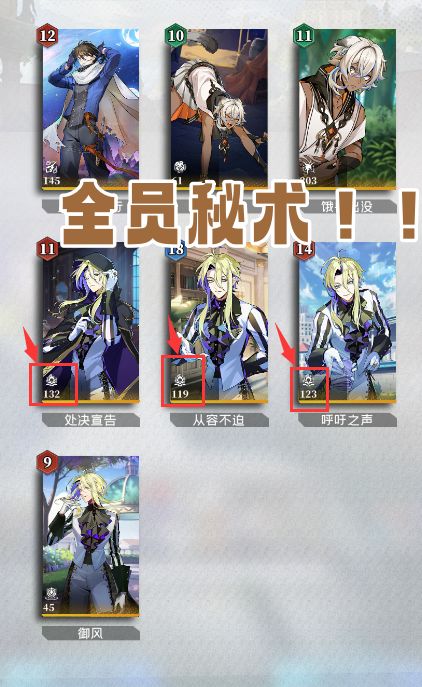 >>神中神【第一课】多乘区+高基础值+超高倍率【不眠之夜】超高加攻+免费升技能+目前唯一一张预言卡>>核心组件召唤随从:【致命的游戏】【处刑宣告】【呼吁之声】【从容不迫】选拔先锋:【王家剑术】【行酒令】选拔守卫:【御风】【非请勿疑】>>调轴&收尾【晨间训练】连击启动器+破盾对策【善意的代价】低费治疗,调轴+消除窒息【共犯者】【及时雨】【奇袭战术】收尾补伤害