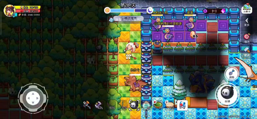 新建帖子后面会不断完善~1.新手第一个科技升级一定要优先升级资源管理!2.按照任务锻造台做完之后,可以做一些箱子来放一些不怎么会用到的物品3.驯养恐龙可以预判恐龙走位然后放捕兽网在地上,这样补捉到恐龙的概率更高