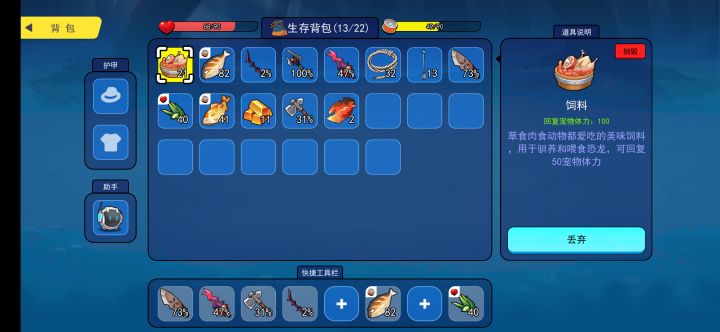 背包做了两个 有一个在地上碍事捡不起来 扔不掉 我的三角龙就围着地上的背包不动 还有就是沙子获得太费劲 一下只有一个沙子 还有一半几率没有沙子