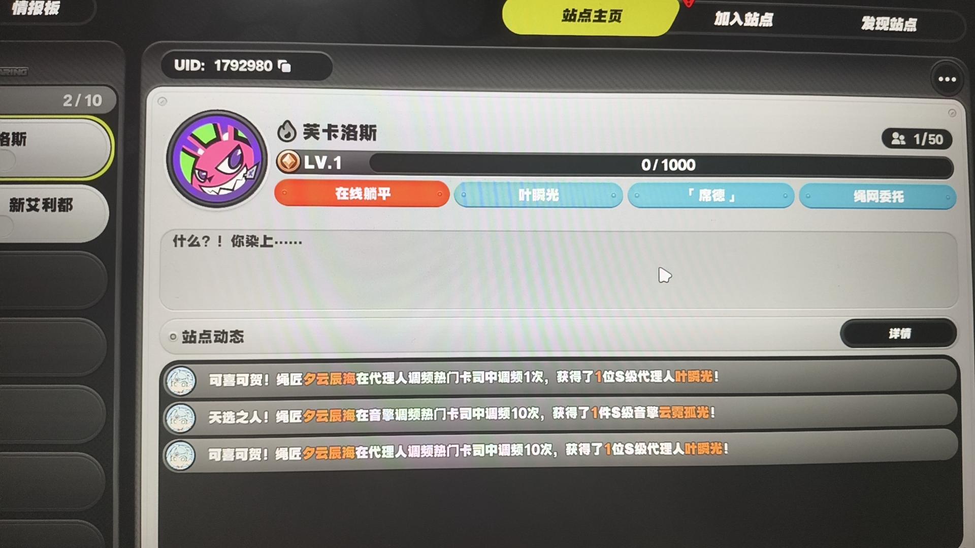 站点id:12980 计划不变搜索直加喵!活跃玩家摩多摩多!还有qq群可以聊天。群里有咸鱼大佬可以邦邦防卫战/危局