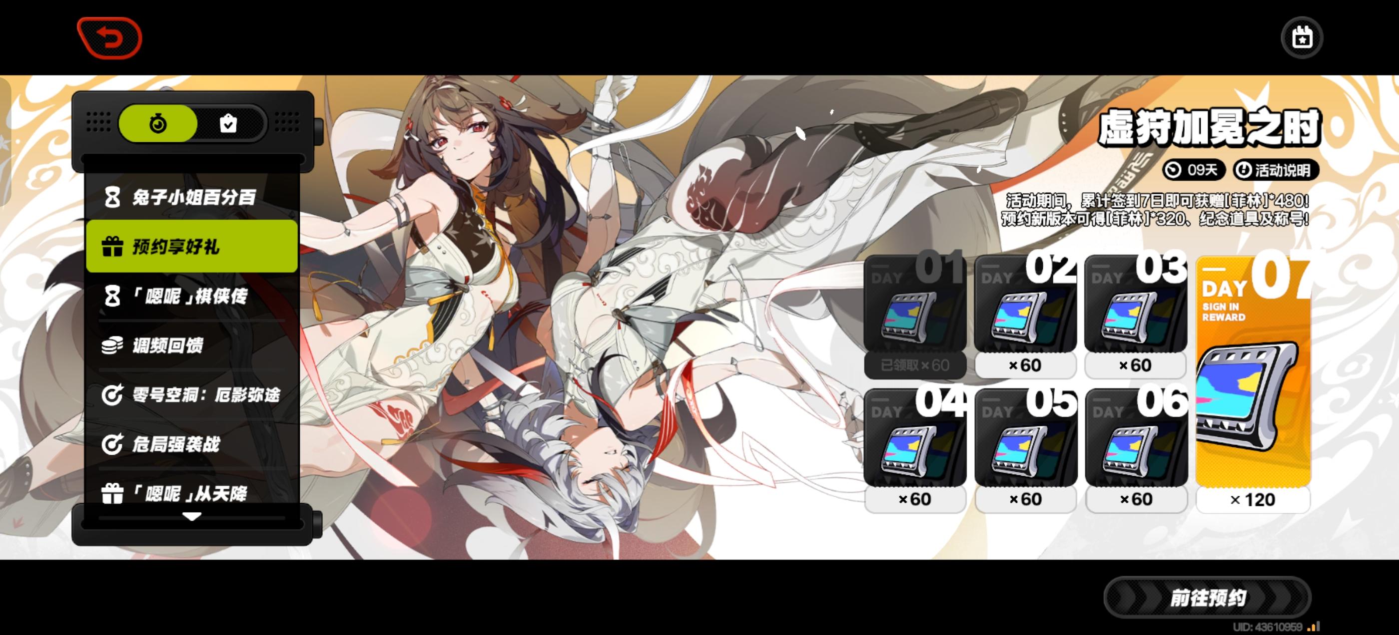 参与《绝区零》2.5版本「虚狩加冕之时」预约活动,领320菲林,游戏内纪念道具及限定称号!更有游戏机、手办、800菲林等抽奖奖励!2.5至2.6版本期间登录游戏,免费获取S级代理人「照」!https://mhyurl.cn/d5D22NdJT?u_code=CACAC978PD2N