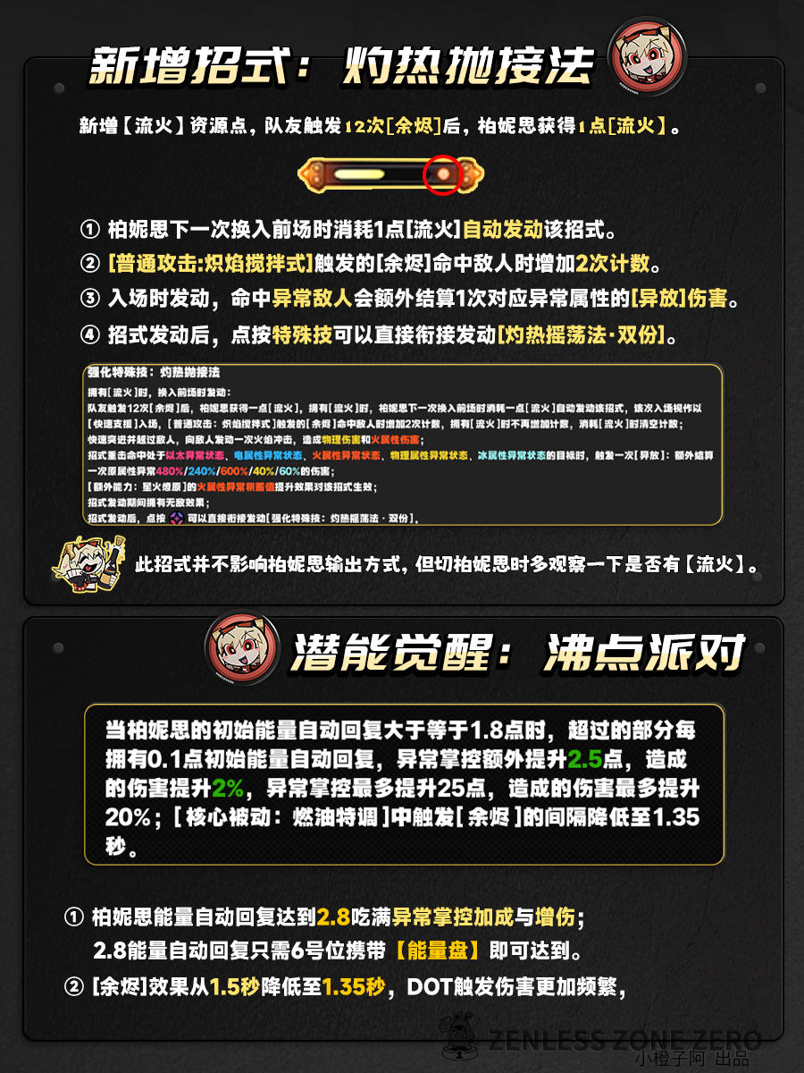 UID:15024695内容来自创作体验服,开发中版本,实际内容请以正式上线版为准哈喽喽,大家好!这里是小橙子阿!三生有幸,十分骄傲,小橙子我获得了绝区零创作者体验服资格。因此本期小橙子将带来即将上线的照角色攻略(主要是一图流),大家可以简单食用,详细攻略等小照上线吧。【简析&一图流】小照是一位冰属性的防护代理人,作为泛用性速切辅助,小照操作非常非常简单,只需要等【霜寒值】满了出来开启