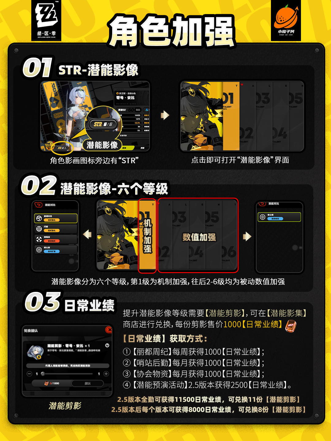 UID:15024695哈喽喽,大家好啊,这里是小橙子阿。版本即将更新,除了小光与小照的上线,还有一众老角色的加强,本期橙子通过图文的形式讲解一下角色加强系统,以及柏妮思、格莉丝与11号加强详解。——零号安比与艾莲无非是把之前的加强地方搬到了【潜能影集01】当中,后续02-06又增加了一个【潜能觉醒】提升数值,整体机制再没有进行改变,因此不做过多描述。#发现好游戏 #微光引灯时 #游戏种草计