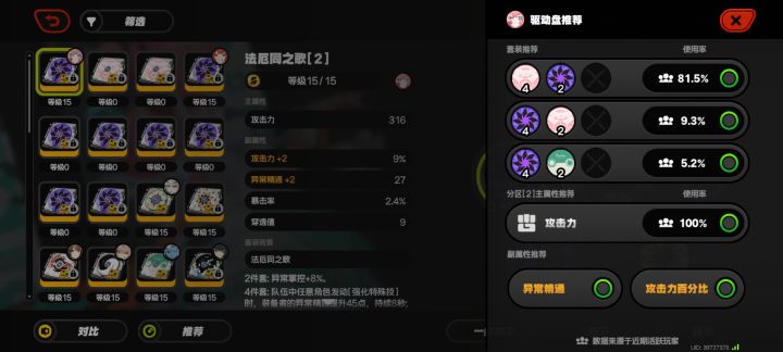 看了下推荐81%绳匠带的都是4流光4流光覆盖率和增幅都略低于4法厄同实测词条数差不多情况下危局爱千柚带4法厄同分比4流光高一些词条数差不多的情况下更推荐带4法2精通然后是音擎,首选肯定是爱芮专壳中之灵其他下位只能达到专的80%左右推荐里面没有薇薇安专,在这推荐一下比嵌合会更合适一些分享几个操作小技巧爱芮下砸前蓄力期间有霸体但不是无敌常用强化技后长按普攻可以无前摇下砸同理还有
