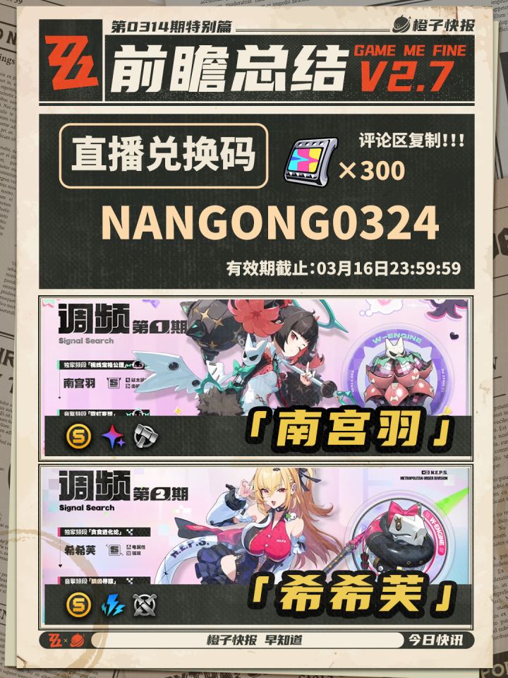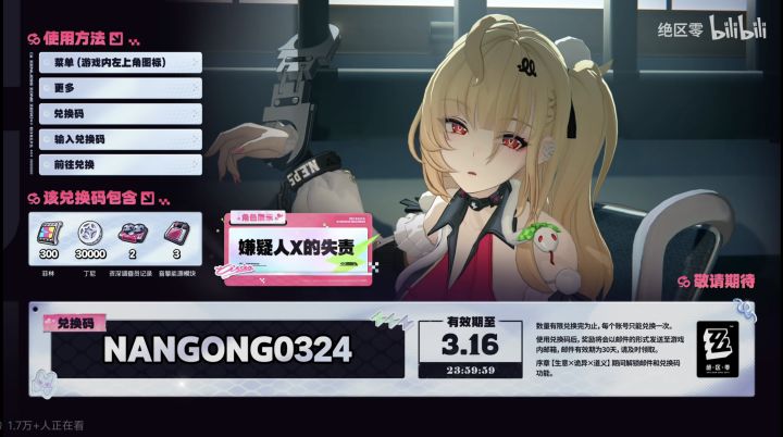 绝区零2.7版本前瞻兑换码NANGONG0324