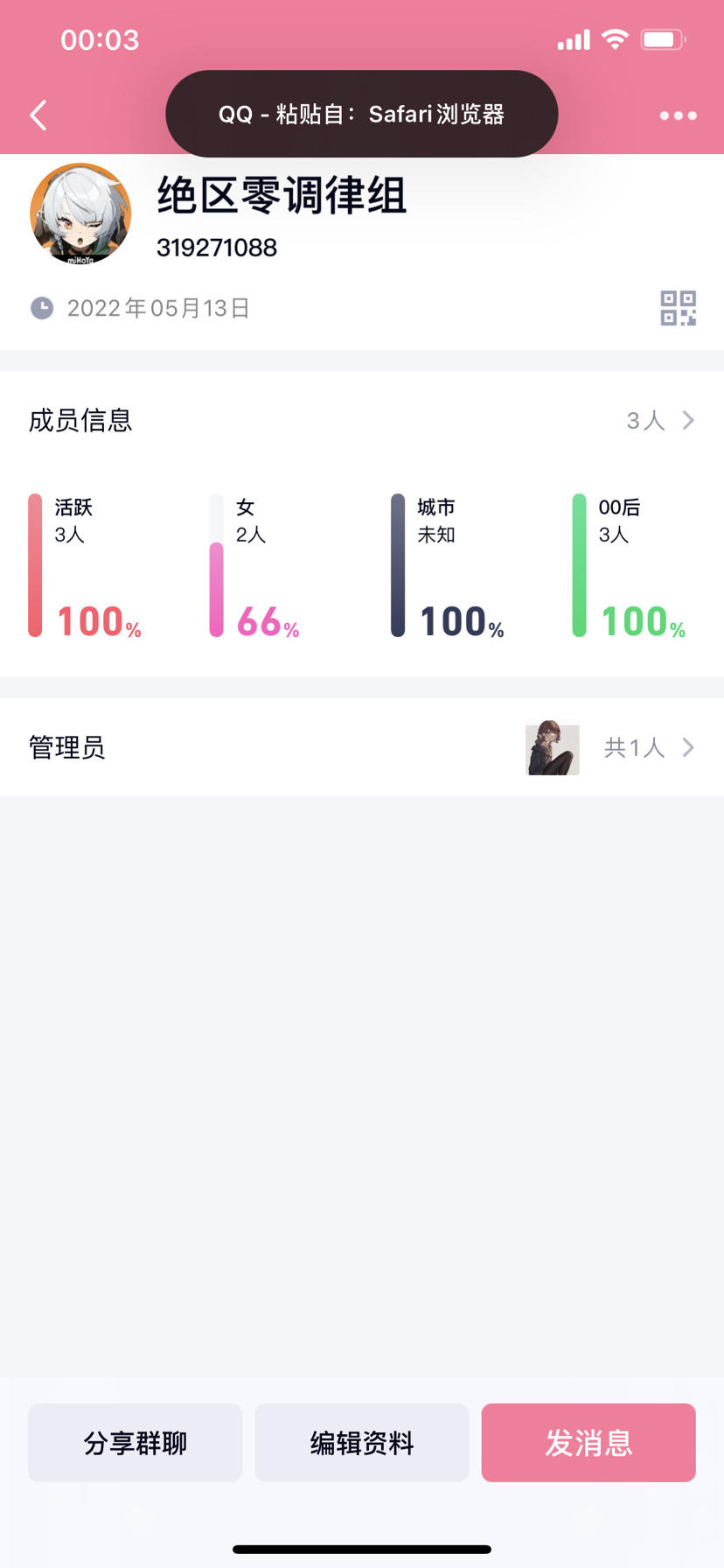 (希望各位别把我当骗子)此群立志于“讨伐”米哈游,为玩家谋取福利。群中高质量精英玩家玩家全天候轮班在线(除零晨外,毕竟也是人,需要休息)为玩家解决米哈游所出游戏的配队、培养以及攻略等(比如原神、崩坏三以及即将推出的星穹轨道、绝区零)。当然,其它游戏也会有人可以帮提出建议。同时,如果群员在现实中遇到挫折之类,说清原由,也会有大伙安慰、鼓励(虽然某些人方慰方式有些特别,但请放心,他们都是真心的);学习