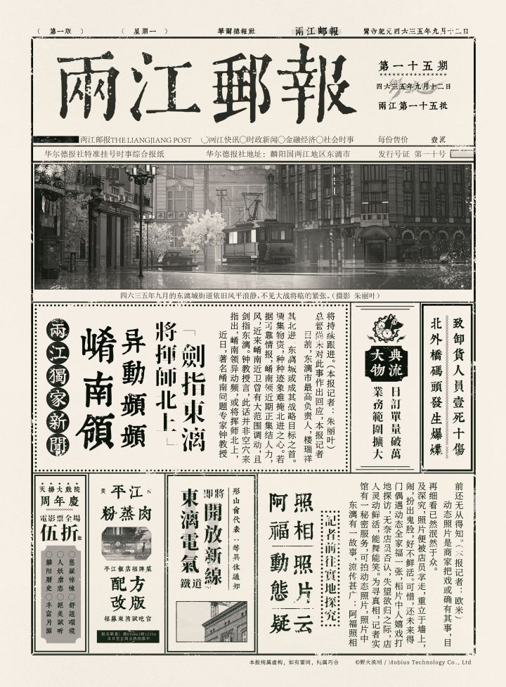 东漓市历来销量最高的《两江邮报》一线关注崤南问题,特邀著名崤南问题专家聚焦崤南岭近日异常!最新一期依旧权威、可靠,未来风云皆在这一纸之间。点击阅读,打开全新格局。