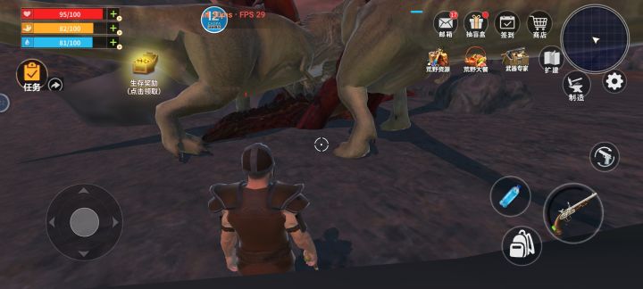 如果没有枪的话就拿把武器防身打三角龙时要和它绕着打要不然容易被它顶到打地图中大部分龙都可以用这种方法去打还有一种棘龙也会主动去攻击人棘龙的话下期再发如何徒手干龙是视频