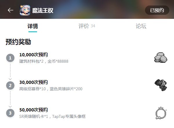 HEY 各位TapTap的冒险者,大家上午好哇~我是史莱姆,几天不见有没有想我哇~(不回答就是有咯)《魔法王权》自创建TapTap页面以来,受到了五湖四海众多玩家的关注,为了感谢各位冒险者大人的喜爱和支持,特意为大家准备了预约里程碑奖励!嘿嘿,这可是我和策划哥哥软磨硬泡,讨价还价多日才敲定的呢 (*^▽^*)达到1W预约,全服发放 建筑材料包*2,金币*88888达到3W预约,全服发放 高