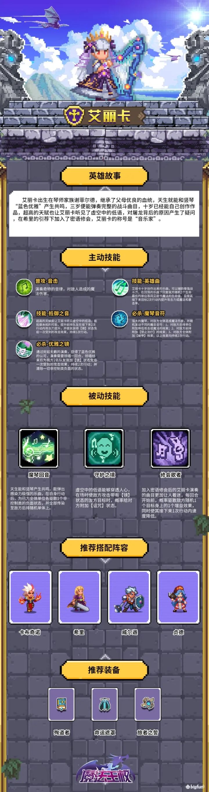 一般人我可不告诉他艾丽卡有多强力,作为密语修会中的一员,艾丽卡掌握了聆听和演奏的技巧,是艾露恩闻名的演奏家。她的琴声能振奋人心,也能形成保护的屏障。在游戏中,艾丽卡的必杀技能可以免疫伤害,攻击技能还能作为副群AOE输出给敌方带来debuff。天知道先手免疫盾,是多么逆天的存在啊!