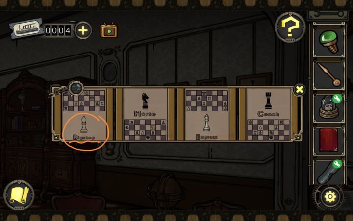 那个bigshop就不说啥了,那个“皇后”的棋子!你为什么要和书上“王”的棋子强行对上!您有事儿吗您有事儿吗您有事儿吗!这玩意儿还可以将就一下拿别的棋子的坐标代替吗,你怎么不直接拿黑色“王”的图像代替“车”呢你。那个书一直在我手里我就知道肯定还有用,正好还有一个象棋谜题,我就打开准备看看书里,但是这五个棋子图像里并没有“皇后”这个棋子,无法对应,于是我放下书对着那几张挂画开始疯狂试错,同时陷入深