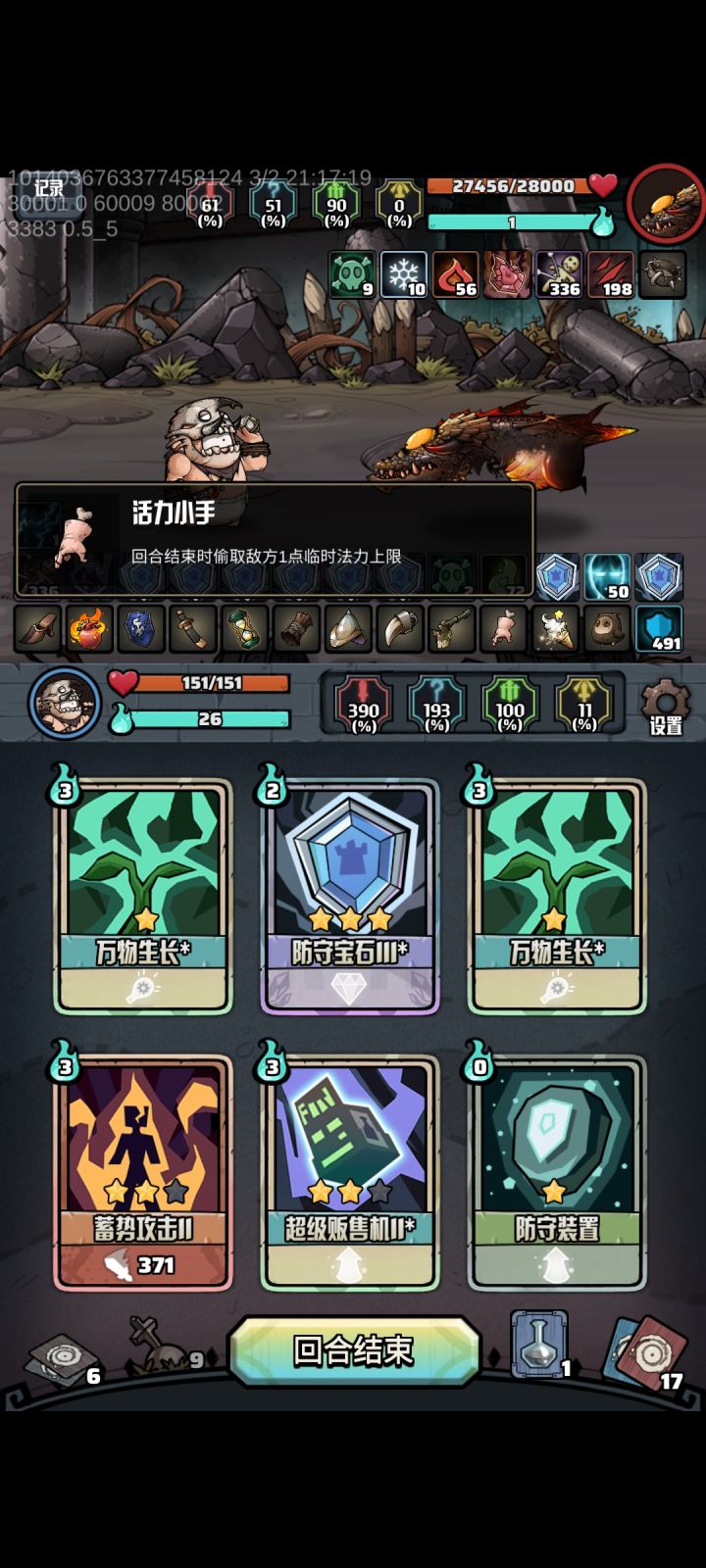 巨人同心瓶对灵魂收割不起作用,这个描述太迷惑了吧,写成:冒险中(不包含对战) 还差不多。另外反馈一个显示bug,回合数过多以后敌人会不显示,变成大战空气了