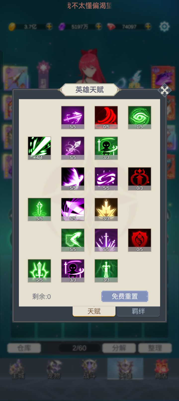 一.人物选择 当前版本建议用暗莉娜,暗属性还是莉娜更强。莉娜是一个适用于开荒速推的角色,而且也是当前版本时装最多的一个四百层以后怪物暗抗30,其他属性90,所以现版本除莉娜以外不太推荐玩,其他几个想玩的话只能堆肉,而且进度会特别慢第一天首要任务解锁四个角色,挂机经验是四个角色同时加的,没解锁的话会少吃很多离线经验,并且英雄派遣做多也支持四名英雄同时派遣,前期优先金币和晶石派遣任务,这是前期晶石