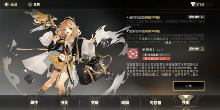 突破後被動:自己的技能對敵人造成效果後,敵人醒來有減速效果(睡眠有時間限制)