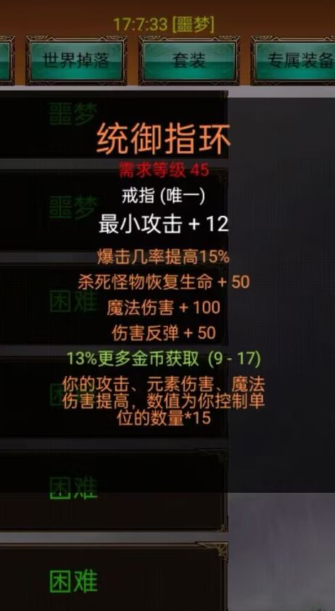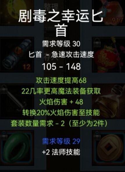 1.利用好统御戒指,一切召唤物都可以给本体附加属性。火蛇陷阱,洞蛆,骷髅,狼,蝙蝠,图腾等等都算,目前版本召唤物消失后附加属性不消失,所以只要一口气刷的图够多,可以叠上千属性,后续版本有可能会改。建议尽快刷好装备护符,无痛度过新手期。2.关于属性上下限,以艾芙娜戒指的元素伤害为例。目前显示范围是根据当前装备品质和等级(-需求后的等级)计算的,且不含暗金装备的固定伤害值(比如电戒21固定电伤)