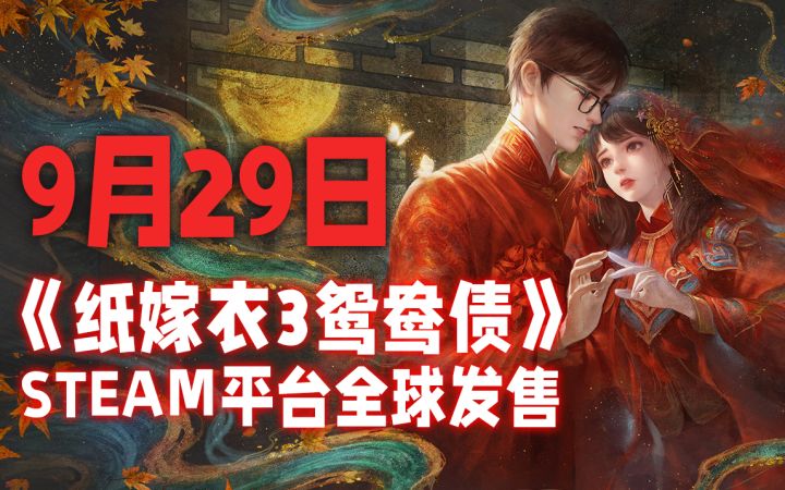 “但愿五湖明月在,且宁忍耐,终须还了鸳鸯债”大家期待已久的《纸嫁衣3鸳鸯债》全新重置横版将于9月29日在Steam平台全球发售!“阴”乐工坊,专属成就,珍藏艺术设定集,原声DLC将同步上线,快来加入心愿单吧!【横版重置】 全新重置场景与人物,末水村细节尽现【音乐工坊】 Steam版我们增加一个独立的乐坊小游戏,大家可以尽情演奏【珍藏设定】 steam版特供宣传原画,纸嫁衣3鸳鸯债珍稀设定