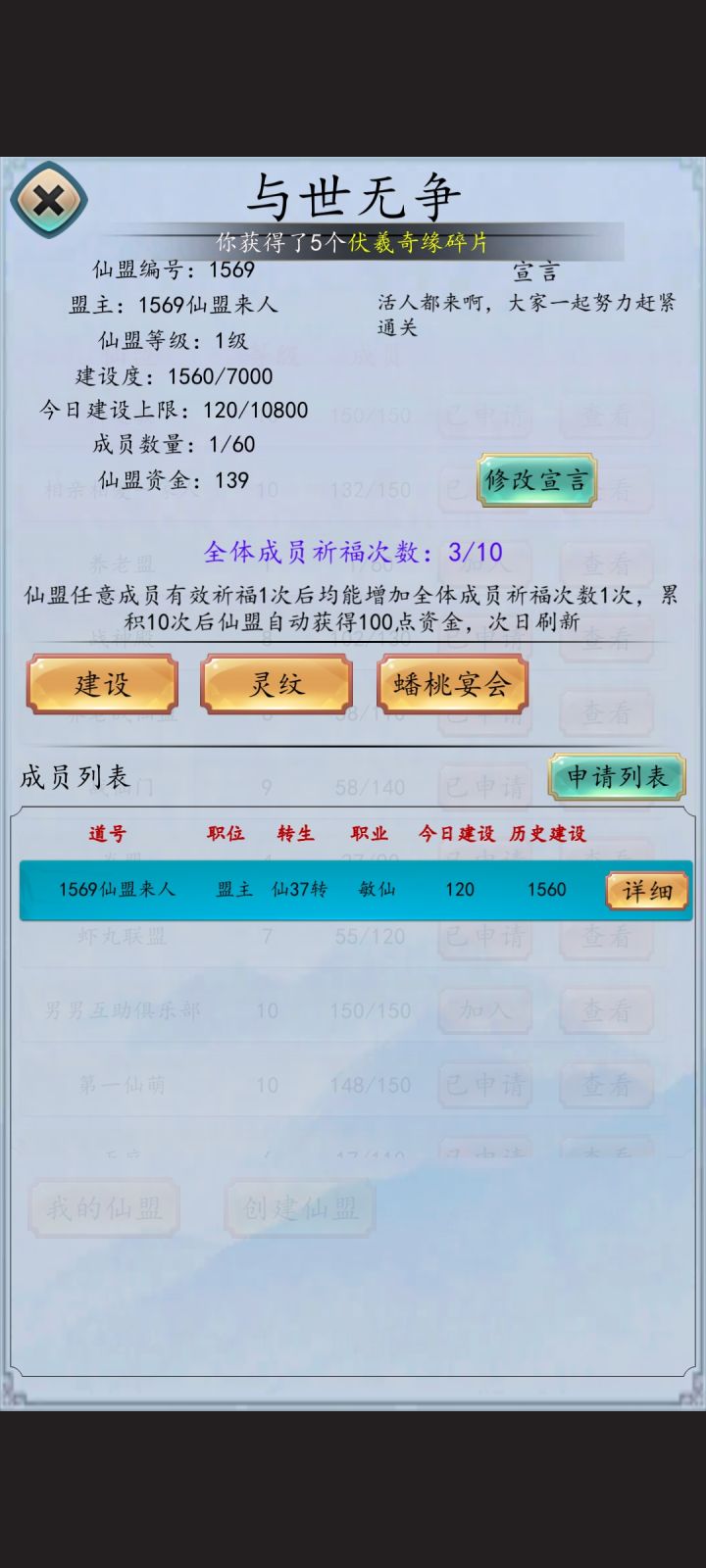有没有新入坑的玩家啊,一起来玩啊,一个人建设仙盟太慢了
