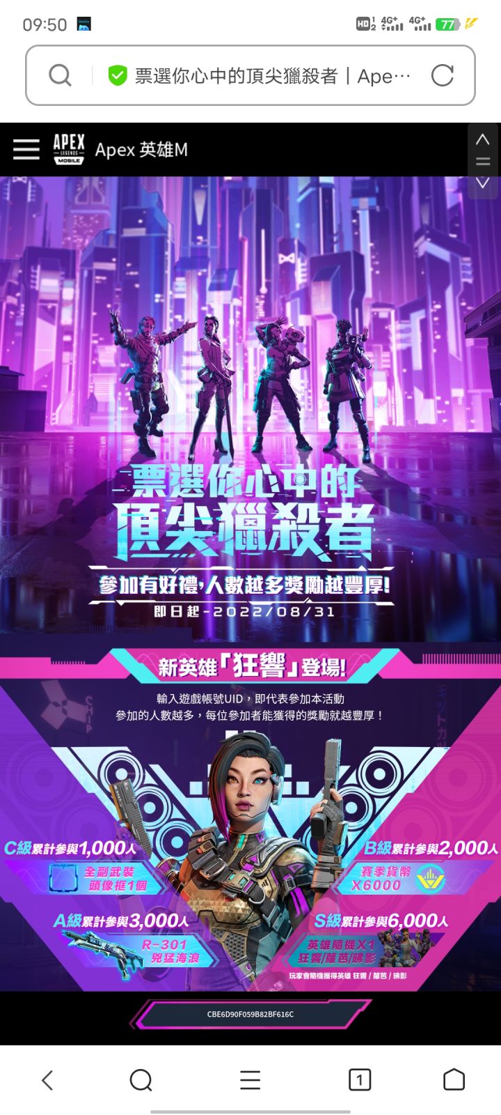 apexm.tw/event/2022vote/kol/?i=E2D98725A0B3C4DC好哥哥们帮忙点点啦😋,白嫖皮肤的