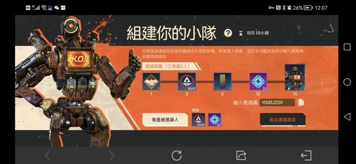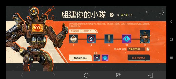 港服邀请码7MNXZES7主页面点击赛季活动——限时——组建你的小队——去邀请点击"我是被邀请人"
