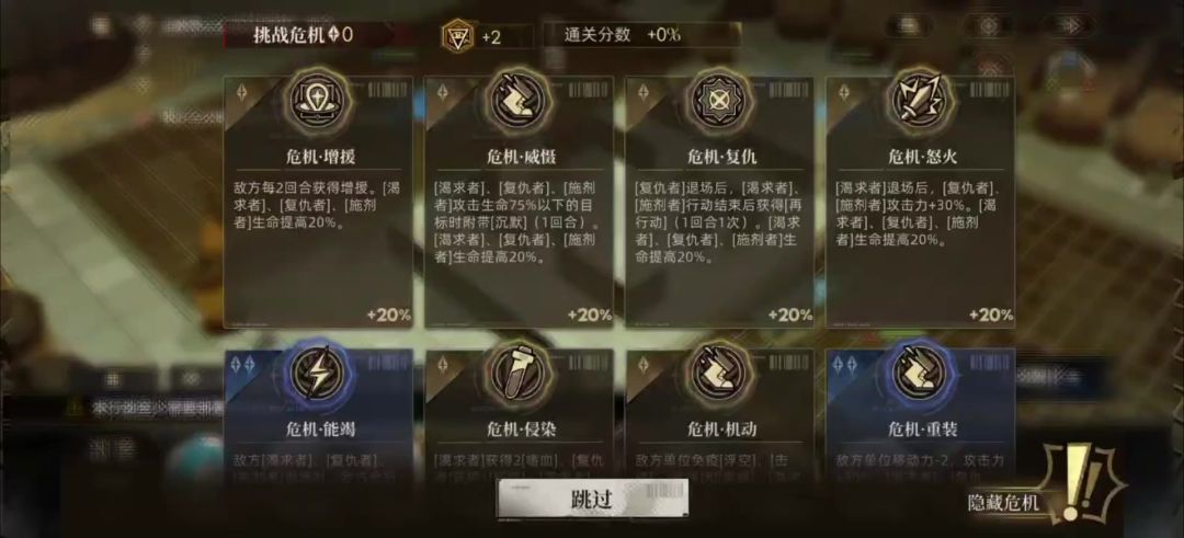 选的是两个蓝色危机卡 六星0拓,五星拓变无要求 队伍配置:马格南+伊丝梅尔+安妮塔+波平斯+噩兆 六星拓变禁用 思路:和上半相同的思路,左下角马格南躲掩体后卡住复仇者;右上角伊丝梅尔卡掩体配合安妮塔击杀渴求者;波平斯召唤物最后攻击吸引仇恨,噩兆带蓝钥匙帮助波平斯回能。 注意事项:下半敌方高抗性,可选择上半用波平斯+噩兆逃课首领,下半用K先生+噬象者的组合。