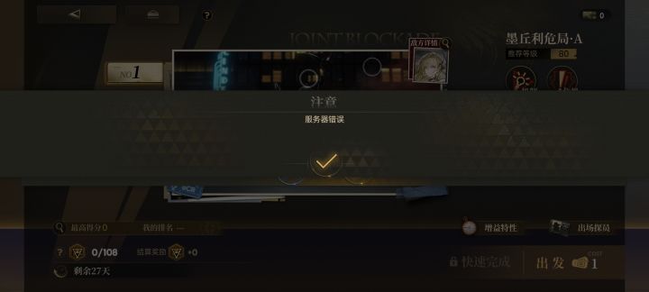 联线封锁一直显示服务器错误,退了重登也不行,放弃了第一次还是不行