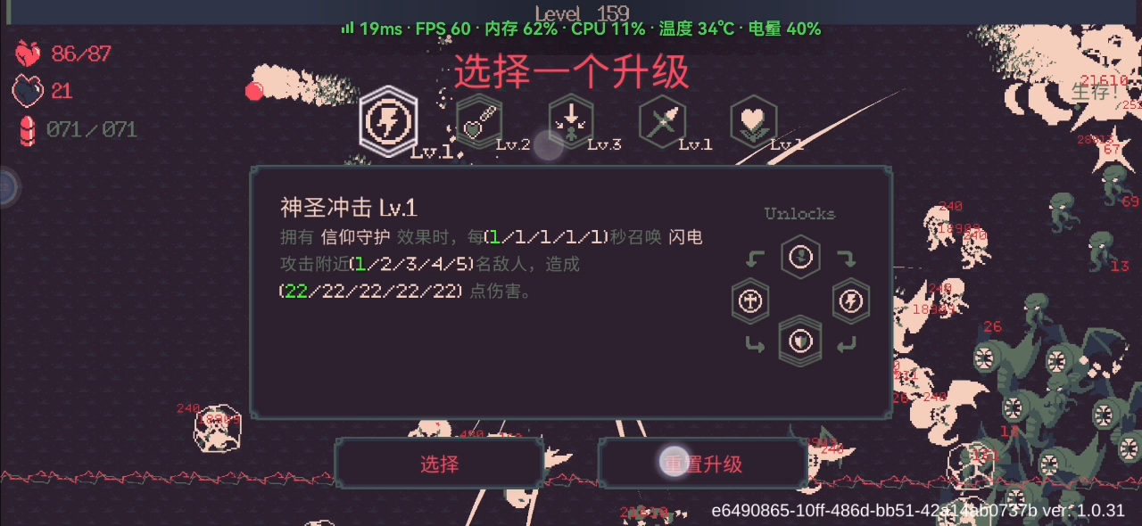 受伤时概率红屏,红屏没法操作,这不是BUG?唯一的规避方式就是受一次伤就没了(闪避叠满就行,我这还没满就受伤了,寄咯)